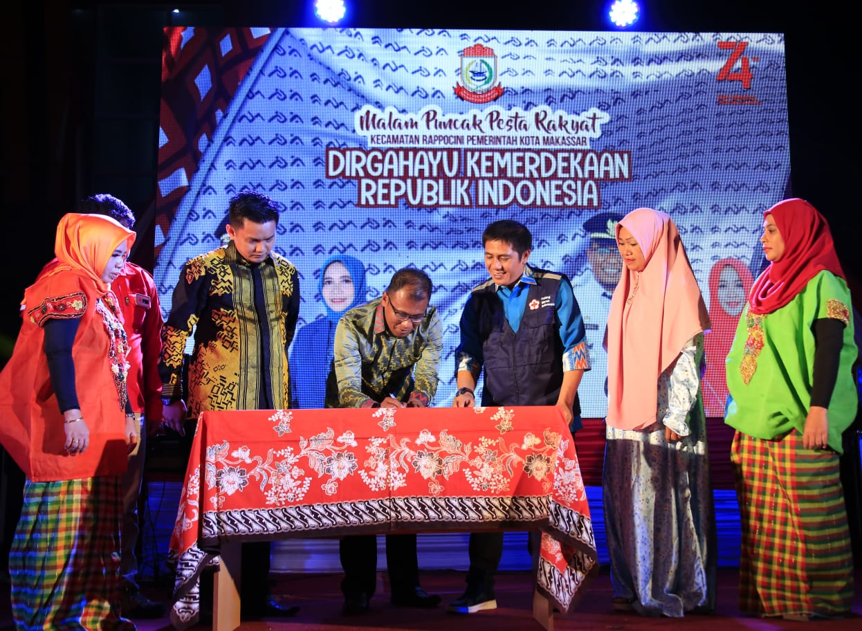MAKASSAR, LINKSULSEL.COM- Pj Wali Kota Makassar Iqbal Suhaeb didampingi Pj Ketua TP PKK Kota Makassar Murni Djamaluddin Iqbal menghadiri malam puncak pesta rakyat kecamatan Rappocini, di Kompleks Minasa Upa Blok G, kelurahan Minasaupa, Rabu (21/8/2019).
