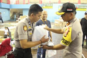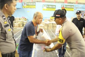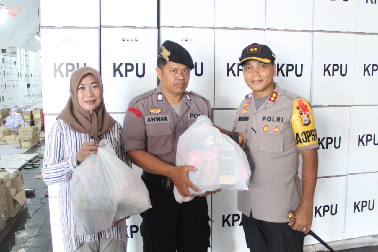 Dalam kunjungannya, Kapolres juga tak luput memberikan bingkisan kepada sejumlah personil dan petugas KPU yang bertugas sebagai pengamanan di gudang logistik.