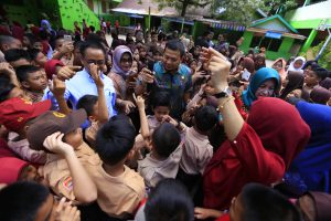 Anak-anak SD pun terhibur dengan kedatangan Iqbal.