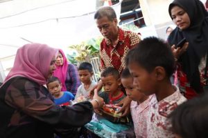 Kehadiran rombongan TP PKK Provinsi Sulsel dan TP PKK Kota Makassar di tengah-tengah warga sebagai wujud kepedulian terhadap anak-anak Indonesia.