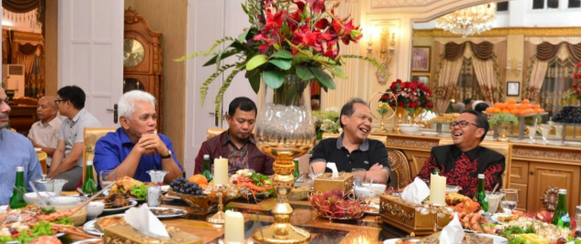 Setelah berbincang, termasuk membahas perekonomian, Nurdin Abdullah mempersilahkan untuk santap malam. Menu yang disajikan berupa sea food.