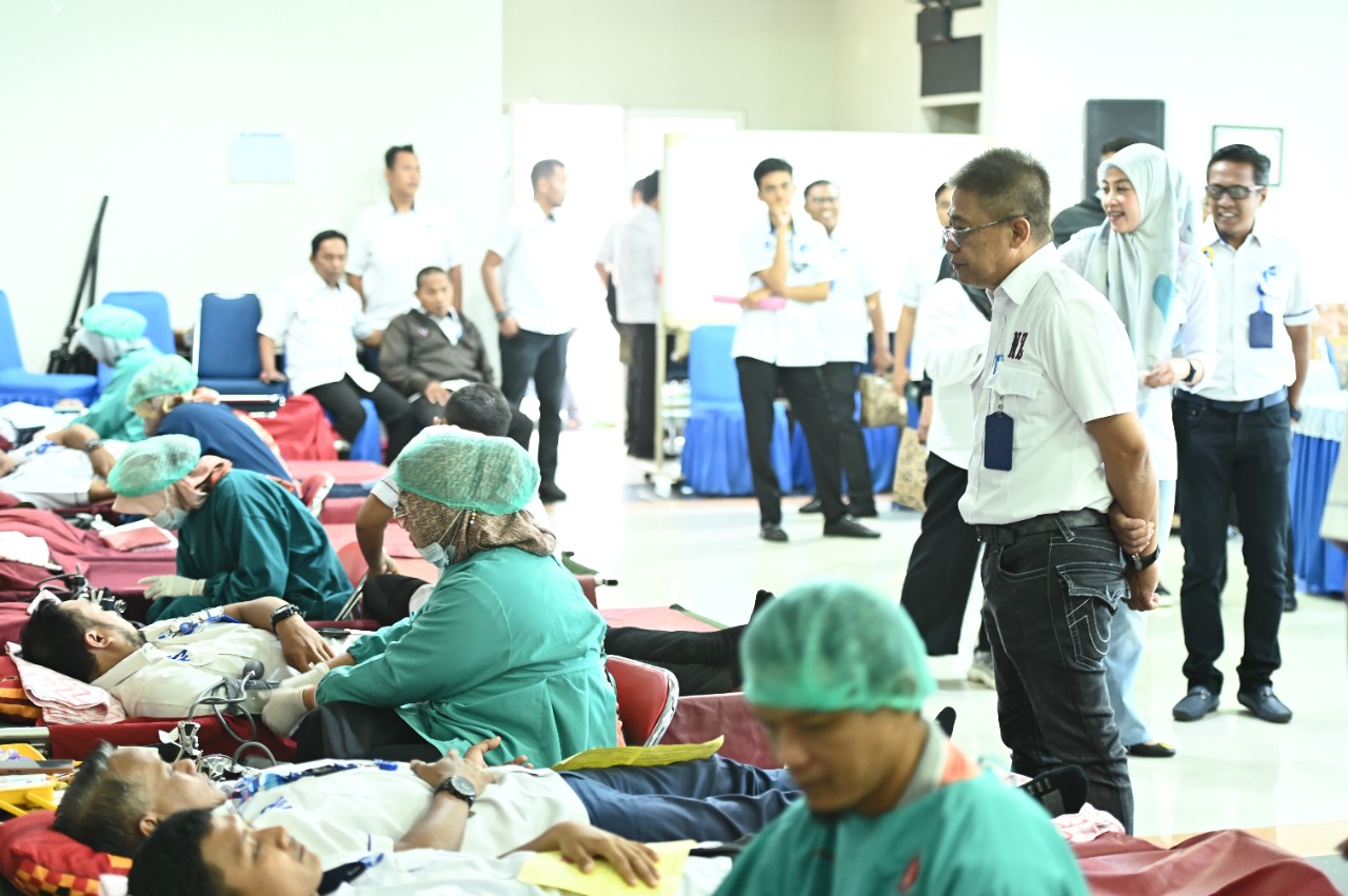 Dalam kegiatan ini, nampak Direksi seperti Direktur Teknik, Asdar Ali, Direktur Umum, Indira Mulyasari, Para Pejabat Struktural, serta pegawai Perumda Air Minum Kota Makassar antusias untuk mendonorkan darahnya.