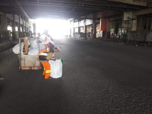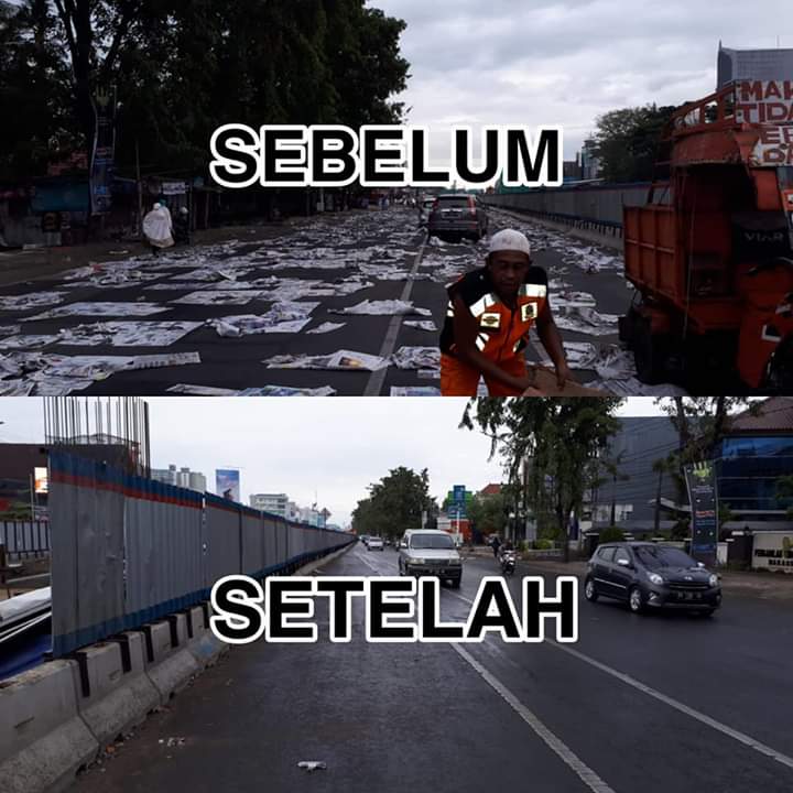 Tidak butuh waktu lama dengan sigap dan cekatan sampah koran-koran tersebut langsung bersih sediakala.