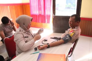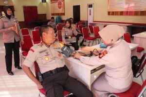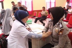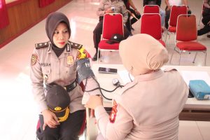 Pemeriksaan kesehatan berupa pengecekan tensi ini, dilakukan langsung oleh Tim Urkes Polres Gowa, yang digelar di Aula Endra Dharmalaksana.