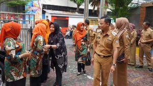 Selain memantau, rombongan bergegas ke ruang kerja camat guna membahas program-program PKK Kota Makassar ke depannya.