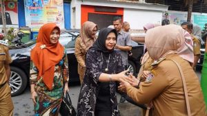 MAKASSAR, LINKSULSEL.COM- Camat Makassar didampingi Ketua TP-PKK kecamatan Makassar Tia Handini Eka menyambut kunjungan pertama Istri Pj Walikota Makassar, Iqbal Samad Suhaeb yang juga merupakan Ketua TP PKK Kota Makassar Murni Iqbal Suhaeb di halaman kantor kecamatan Makassar, Selasa 11 Juni 2019.