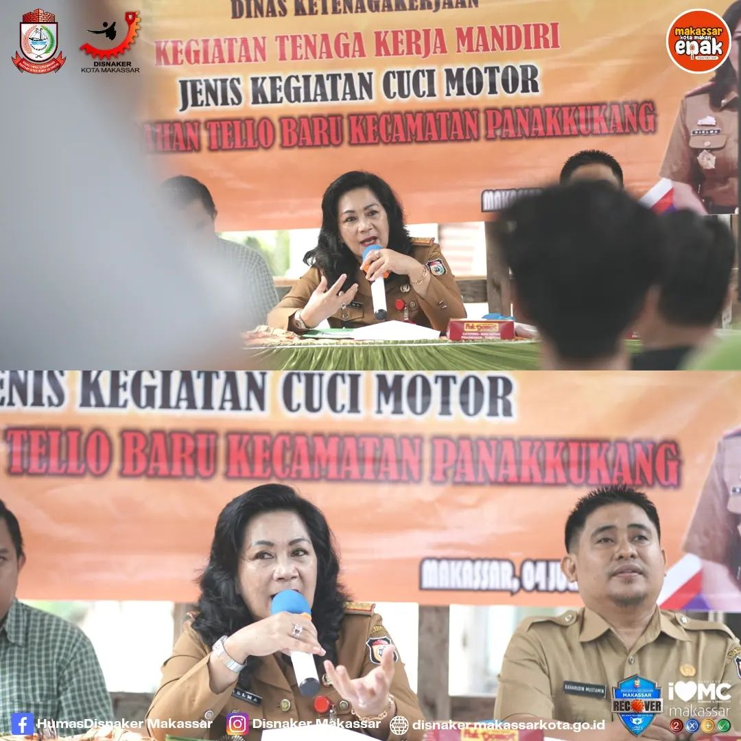 Dalam sambutannya Kadisnaker Nielma Palamba mengatakan melalui pemberdayaan tenaga kerja mandiri ini dapat mendatangkan kemudahan dan keuntungan yang besar sehingga bisa mempengaruhi perekonomian masyarakat di Kota Makassar khusnya bagi kelompok tenaga kerja mandiri di kelurahan Tello Baru.