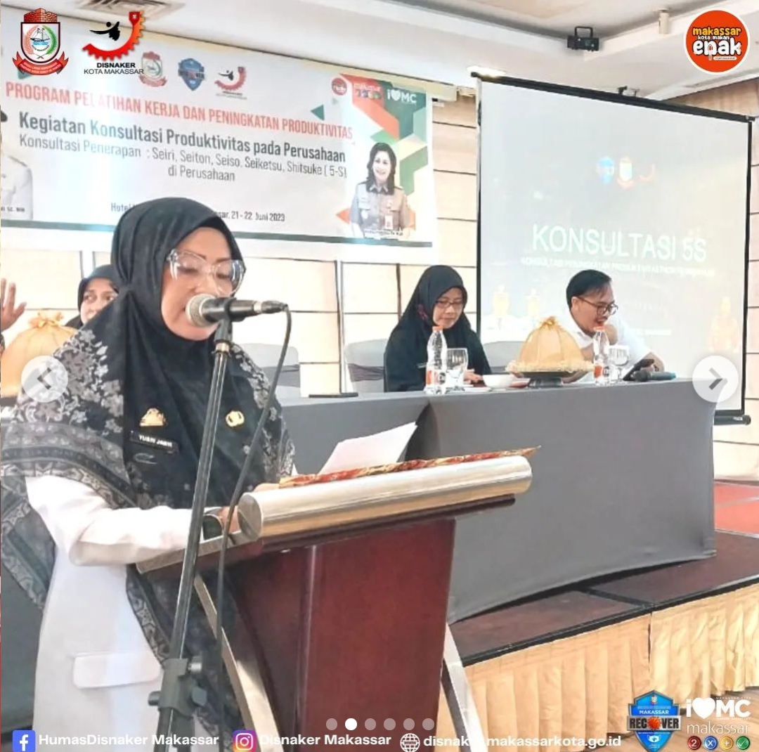 MAKASSAR, LINKSULSEL.COM- Mewakili Kepala Dinas Ketenagakerjaan Kota Makassar, Sekretaris Yuri Jabir membuka secara resmi Kegiatan Konsultasi Produktivitas pada Perusahaan Konsultasi Penerapan 5S di Perusahaan yang diselenggarakan di Hotel Karebosi Premier, Rabu 21 Juni 2023.