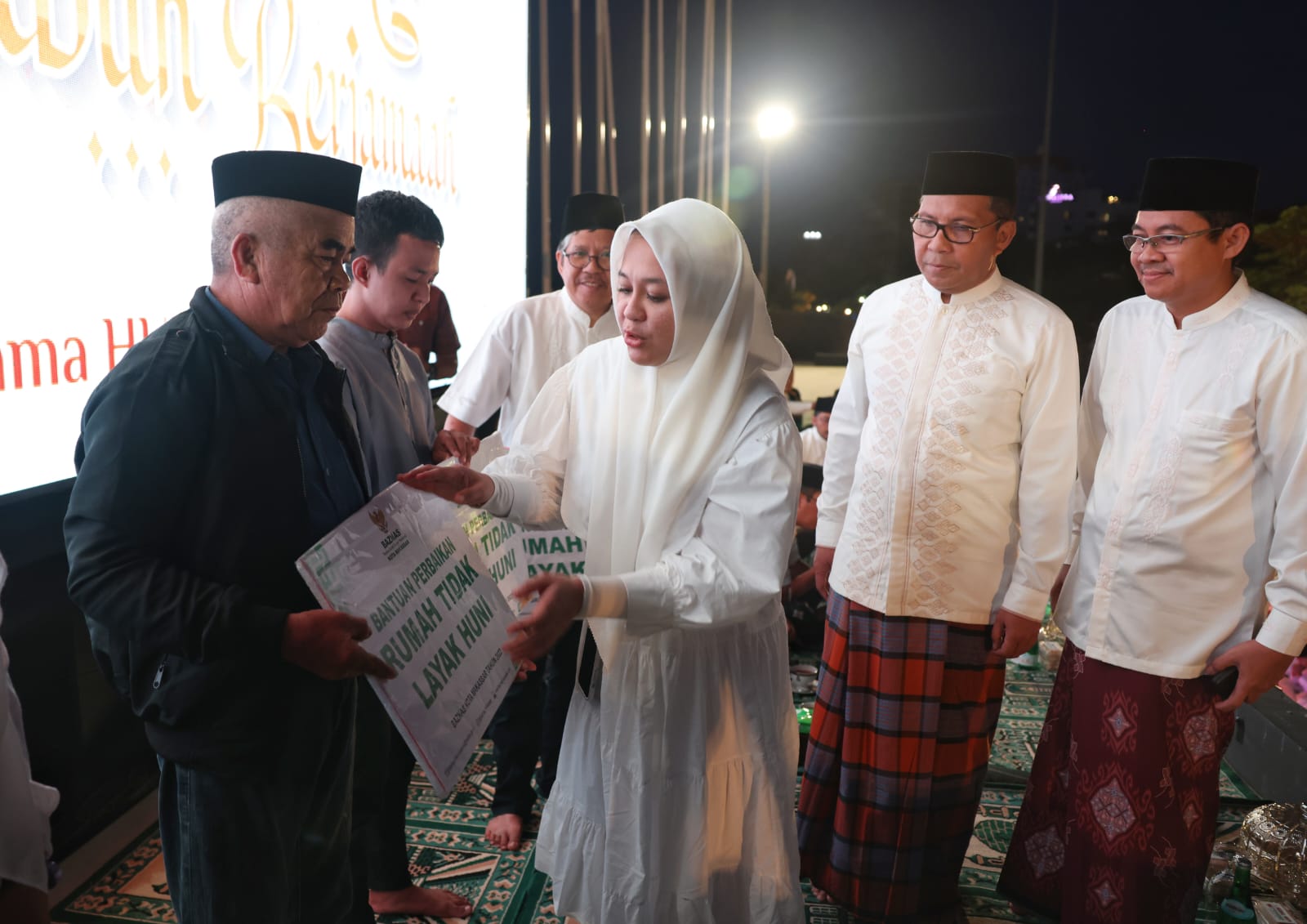 Penyerahan bantuan disaksikan Ketua Baznas Kota Makassar Ashar Tomanggong dan ribuan jemaah yang mengikuti Salat Subuh Berjamaah yang menjadi program unggulan pemerintah kota.