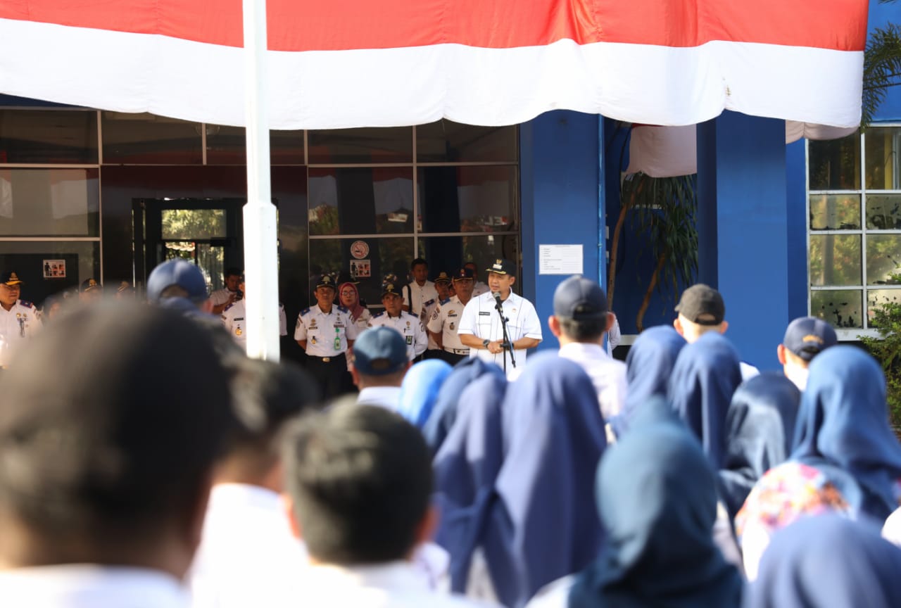 MAKASSAR, LINKSULSEL.COM- Pj Wali Kota Makassar Iqbal Suhaeb tampil sebagai pembina upacara pada apel sore yang digelar Dinas Perhubungan Kota Makassar, Rabu (28/8/2019).