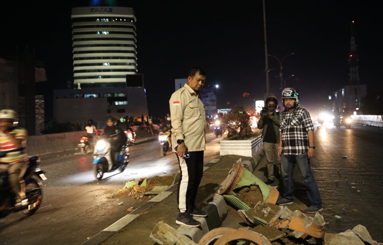 MAKASSAR, LINKSULSEL.COM- Pj Wali Kota Makassar Iqbal Suhaeb memantau kondisi jalan di fly over pasca demonstrasi yang melibatkan ribuan mahasiswa dari berbagai perguruan tinggi negeri dan swasta di Makassar, Selasa (24/9/2019) malam.