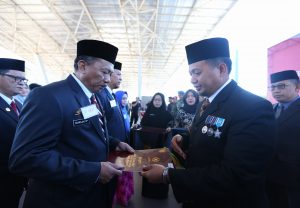 MAKASSAR, LINKSULSEL.COM- Pj Wali Kota Makassar, Iqbal Suhaeb menyematkan tanda kehormatan Satyalencana Karya Satya kepada 636 Aparatur Sipil Negara (ASN) lingkup Pemerintah Kota Makassar di Tribun Karebosi, Kamis (15/8/2019).