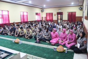 Sementara itu, Ustadzah Fatmawati Hilal mengawali tausiyahnya menyampaikan ungkapan apresiasinya kepada jajaran Polres Gowaatas kegiatan yang diselenggarakan.