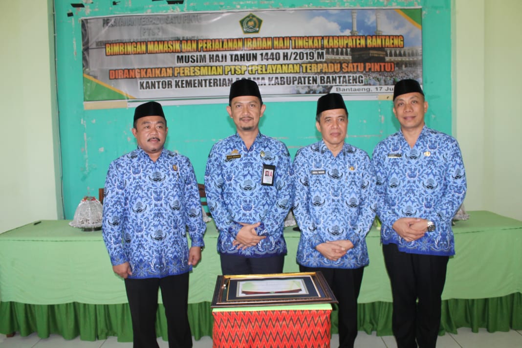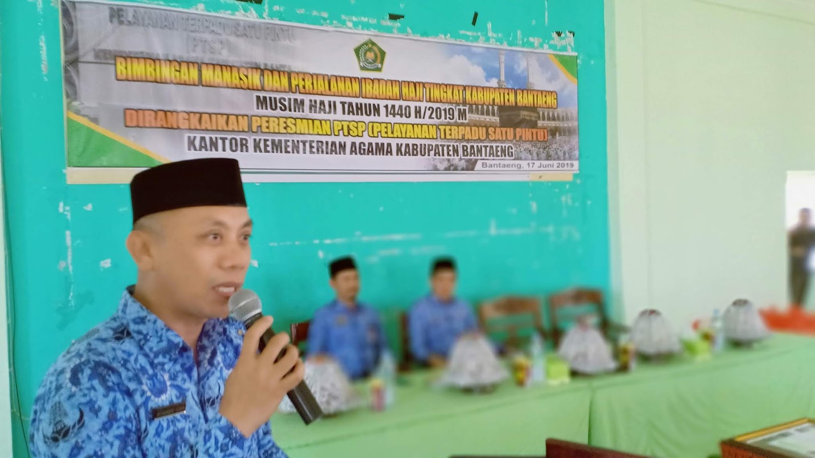 Dan mengakhiri laporan sekaligus sambutannya, Kakan Kemenag memohon perkenan bapak Kakanwil untuk membuka secara resmi Bimbingan manasik yang dirangkaikan dengan Peresmian PTSP (Pelayanan Terpadu Satu Pintu) Kantor Kemenag Bantaeng yang ditandai dengan penandatangan prasasti peluncuran unita layanan terbaru Kantor Kemenag Bantaeng tersebut.