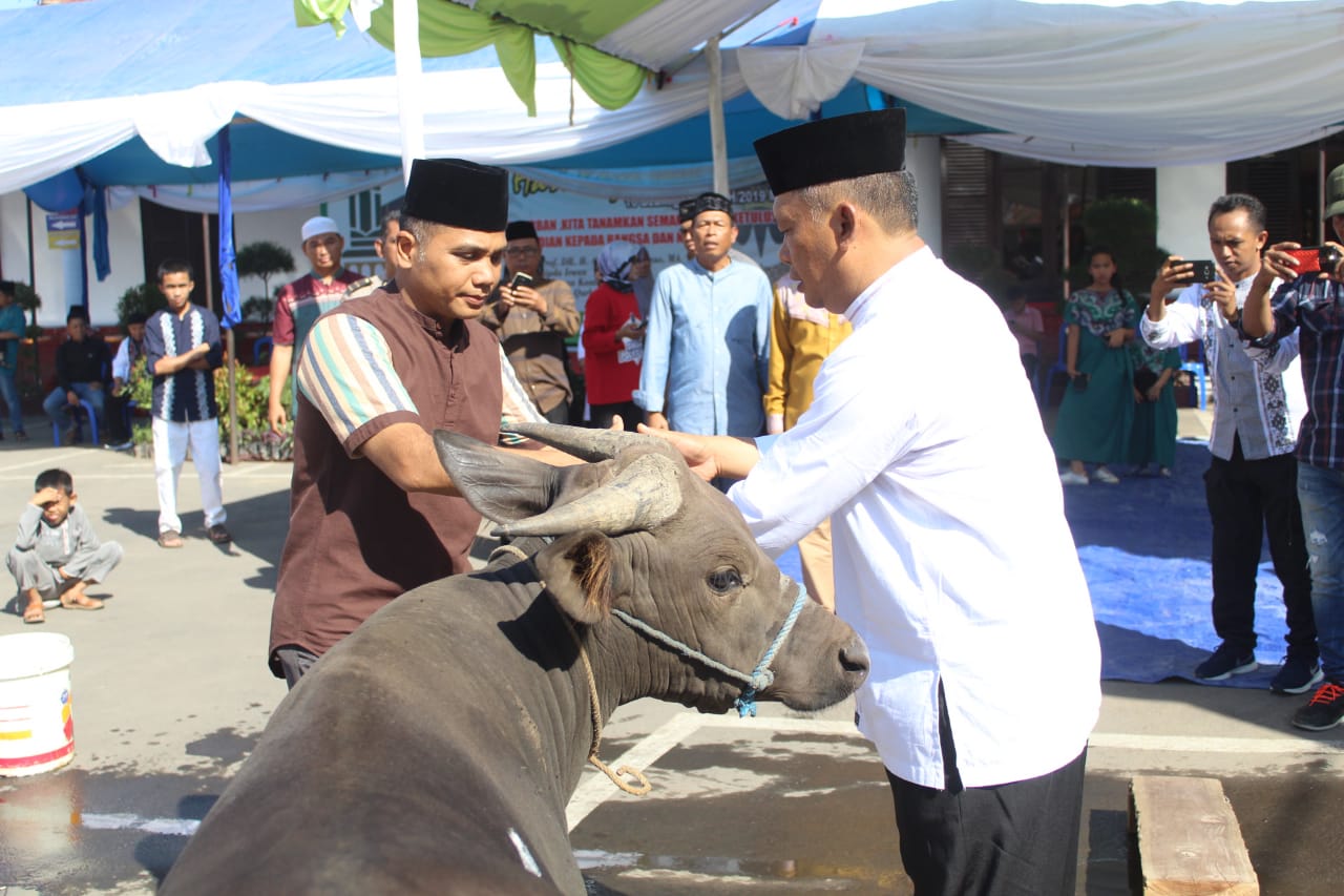 GOWA, LINKSULSEL.COM- Kapolres Gowa Akbp Shinto Silitonga, SIK., MSi memimpin langsung pelaksanaan kurban pada perayaan Idul Adha 1440 H di halaman kantor Polres Gowa, Minggu (11/08) pagi.
