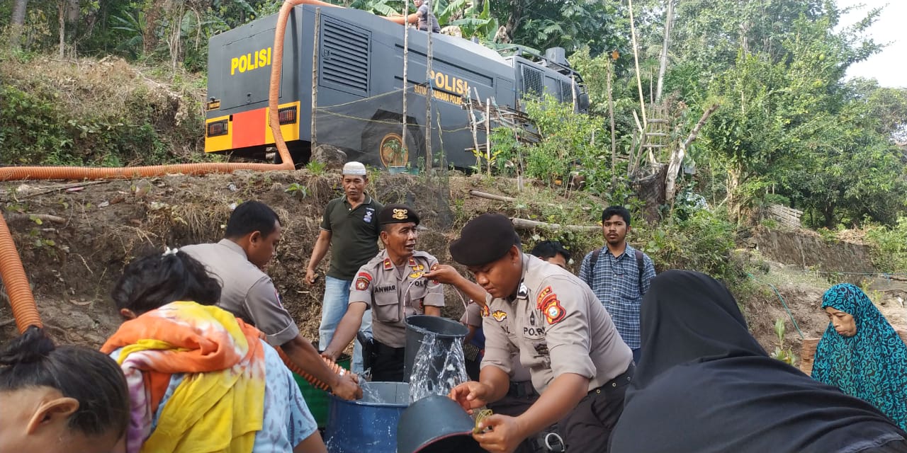 GOWA, LINKSULSEL.COM- Polres Gowa memberikan bantuan air bersih ke masyarakat di wilayah Dusun Bolangi Desa Timbuseng Kecamatan Pattallassang Kabupaten Gowa yang mengalami kekeringan, Jumat (6/09) sore.