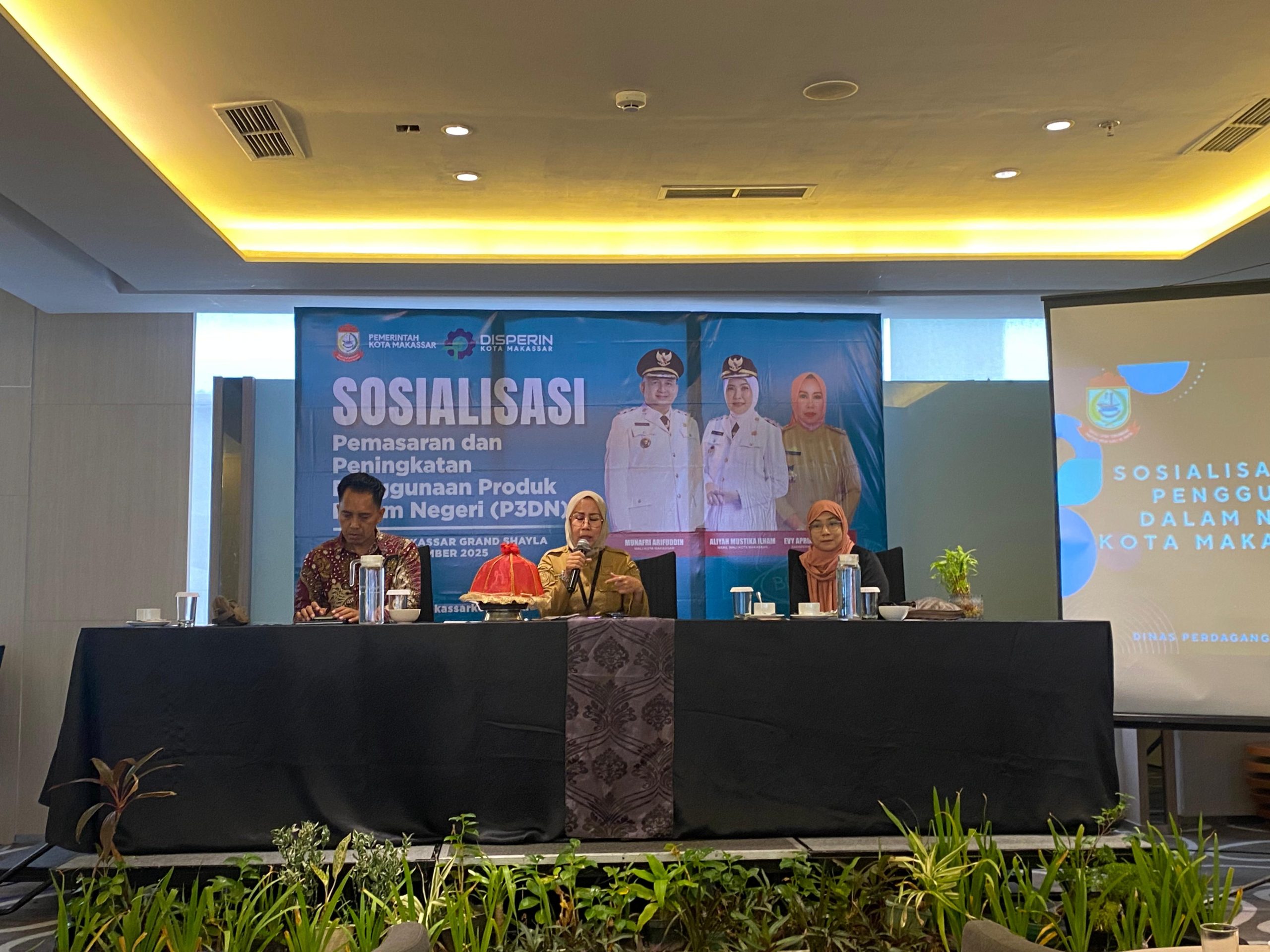 MAKASSAR, LINKSULSEL – Kepala Dinas Perdagangan dan Perindustrian (Disperin) Kota Makassar Evy Aprialti, S.E., M.M menutup secara resmi kegiatan Sosialisasi Pemasaran dan Peningkatan Penggunaan Produk Dalam Negeri (P3DN) Tingkat Kota Makassar pada Senin, 24 November.