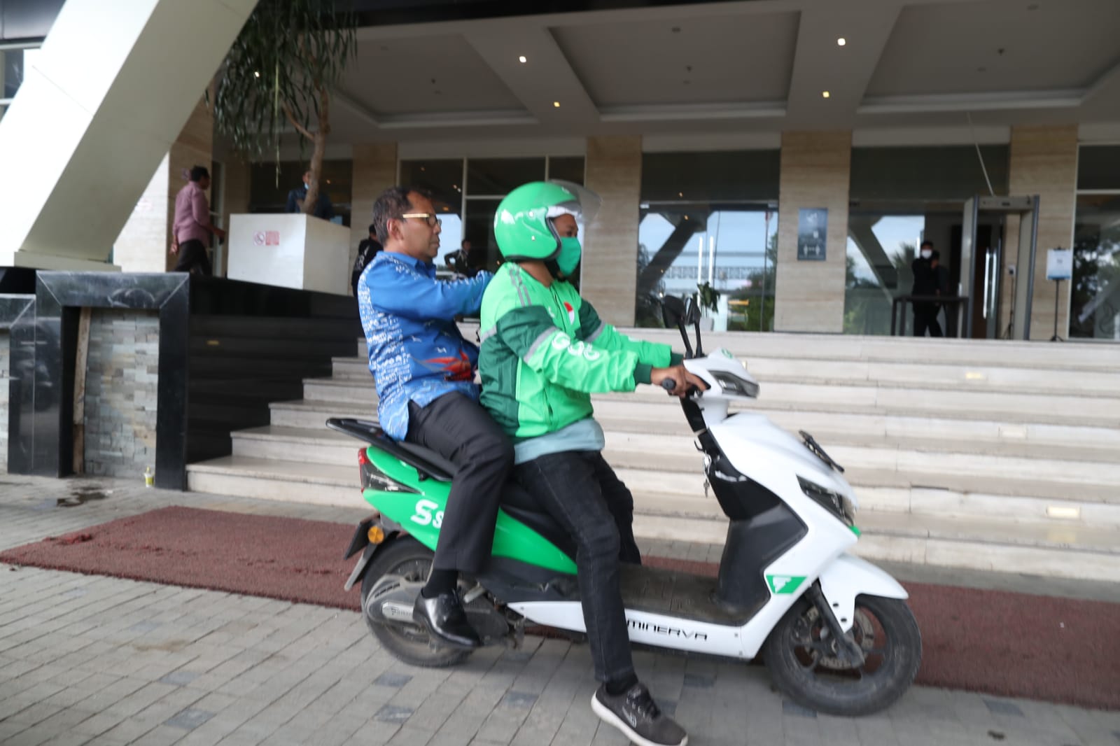 Pencetus program Ojol Day Pemkot Makassar ini menggunakan aplikasi Grab dan memilih motor untuk mengantarkannya ke lokasi kegiatannya.