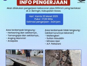 MAKASSAR,LINKSULSEL – Petugas Perusahaan Umum Daerah (Perumda) Air Minum Kota Makassar, kembali melakukan perbaikan kebocoran […]
