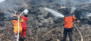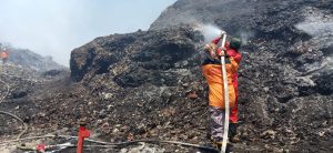 MAKASSAR, LINKSULSEL.COM- Dinas Pemadam Kebakaran Kota Makassar terus berupaya memadamkan api di area TPA Antang.