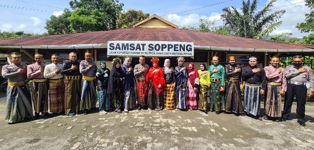 Bukan hanya di Samsat Soppeng, petugas di layanan unggulan juga mengenakan baju ada di hari ulang tahun Sulsel tersebut.