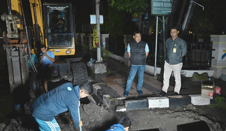 Setidaknya 15 personel dari PDAM diturunkan untuk menangani pengerjaan tersebut. Selain ekskavator bor, satu unit mesin penyedot air juga disiagakan di lokasi guna mencegah terjadinya genangan selama proses perbaikan. Mereka mulai bekerja sesaat setelah magrib, usai melakukan survei kondisi lapangan.