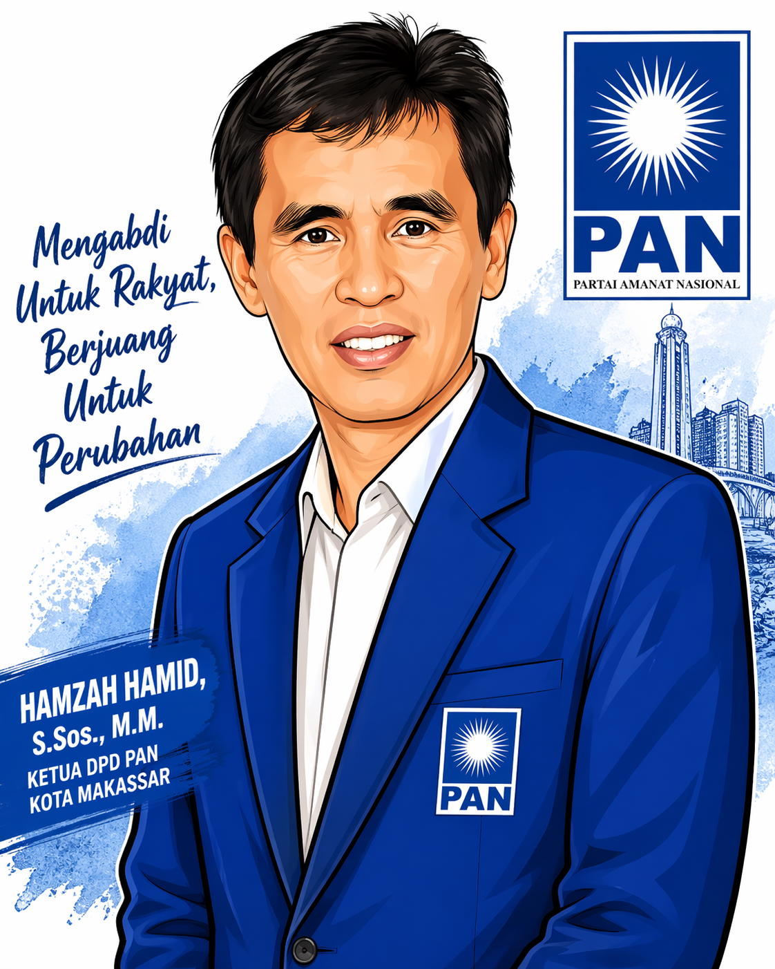 Di tubuh Partai Amanat Nasional (PAN), Hamzah adalah penggerak utama. Sebagai Ketua DPD PAN Kota Makassar, ia bukan hanya memimpin—ia menghidupkan. Ia merajut struktur, menggerakkan kader, dan membangun mesin politik yang tak hanya solid, tetapi juga responsif terhadap zaman. Di tangannya, partai bukan sekadar simbol, tetapi kekuatan yang berdenyut di tengah masyarakat.
