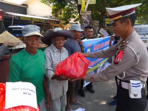 Dikatakan Kasat Lantas, anjangsana ini dilakukan sebagai wujud peduli sekaligus ungkapan syukur dalam menyambut peringatan HUT Lalu Lintas ke-64 pada 22 September mendatang.