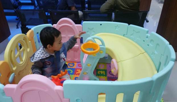 Terlihat sejumlah anak bermain di fasilitas bermain tersebut sambil menunggu orang tuanya menyelesaikan pembayaran pajaknya.