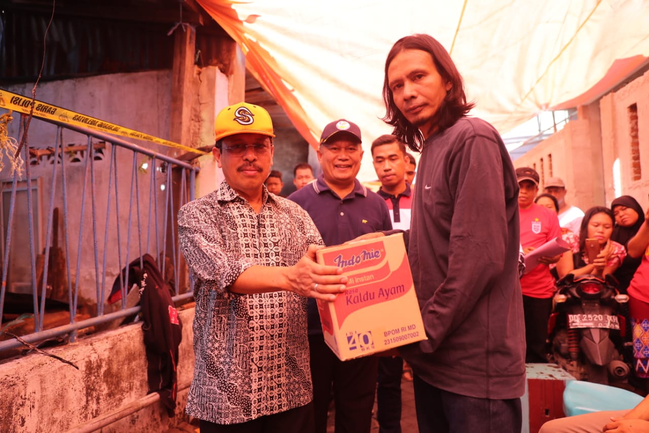 Dalam kesempatan ini Sekda Ansar juga memberikan bantuan makanan kepada korban kebakaran di Sinassara.