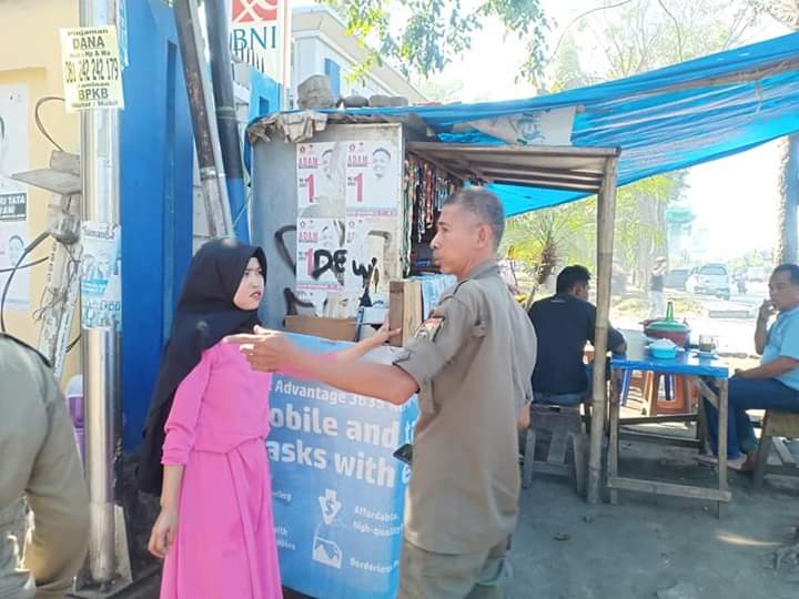 Lurah Karuwisi Utara Syarifuddin M didampingi para personil Satpol PP BKO Kecamatan Panakkukang melakukan pembinaan PK5 di Jalan Urip Sumohardjo depan Gedung Keuangan, Rabu (10/07/2019).