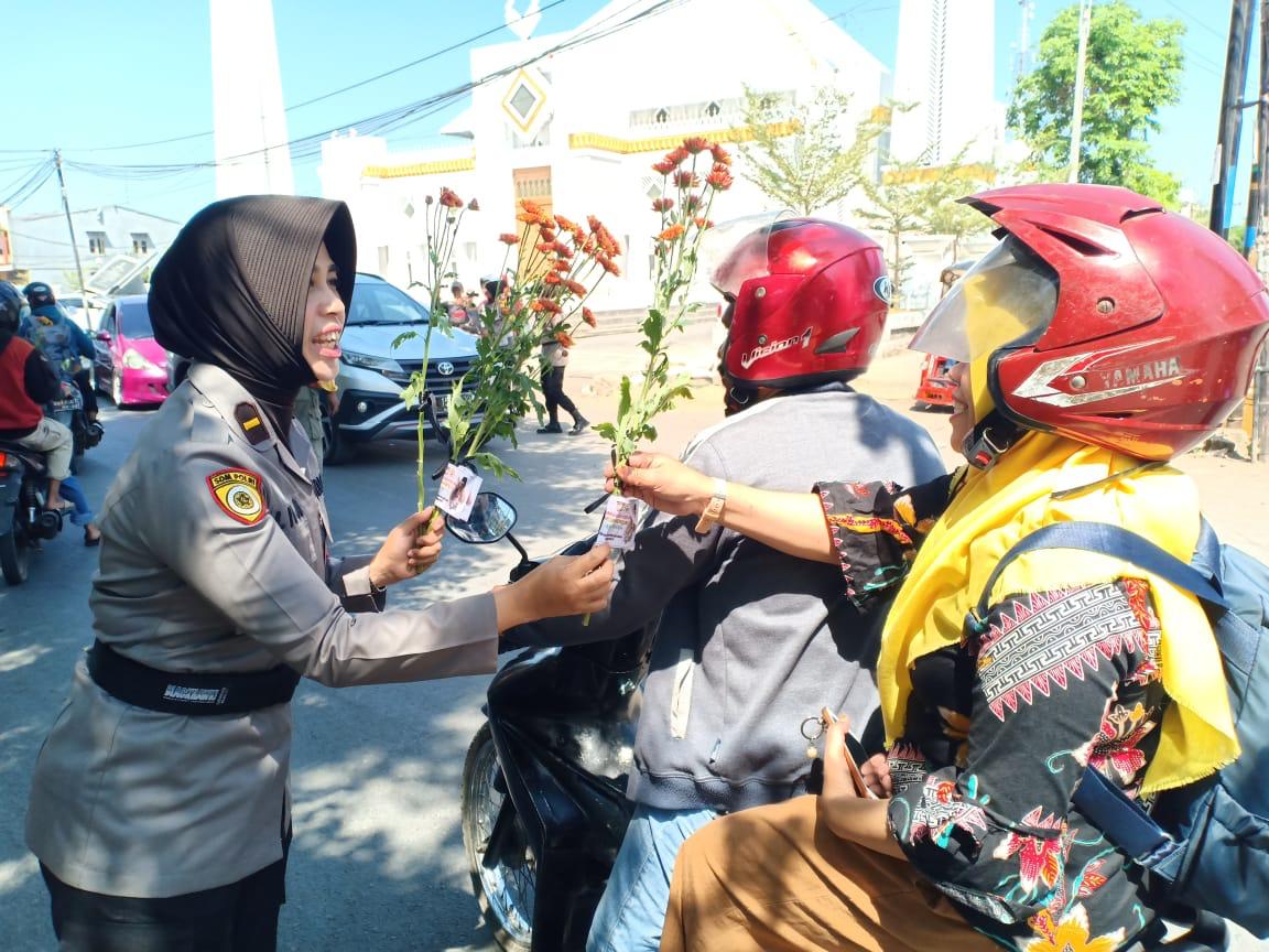 Tak hanya membagikan bunga, para Polwan juga tersebar beberapa titik jalan sambil memegang gambar Alm. BJ Habibie, Pria asal Kota Parepare itu yang merupakan kebanggaan rakyat Indonesia maupun Sulsel.