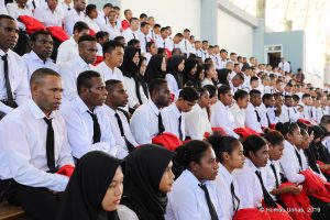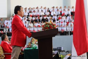 MAKASSAR, LINKSULSEL.COM- Universitas Hasanuddin menggelar upacara Penerimaan dan Pengembangan Karakter Mahasiswa Baru (P2KMB) untuk 6.137 Mahasiswa Baru tahun ajaran 2019/2020. Proses pembukaan P2KMB dimulai pada pukul 08.30 WITA di GOR Unhas, Kampus Tamalanrea. Makassar, Kamis 8 Agustus 2019.